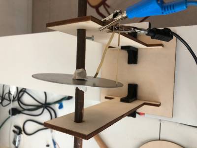 -Réflexion sur la vitesse de rotation: Tourner à la main permet d'effectuer la rotation du disque, mais la vitesse reste assez faible et pas totalement constante. Pour remédier à cela nous avons réfléchi à différentes possibilités: -effectuer la rotation à l'aide d'une perceuse ⇒ la vitesse est constante, connue et plus ou moins rapide ⇒ ça marche plutôt bien.