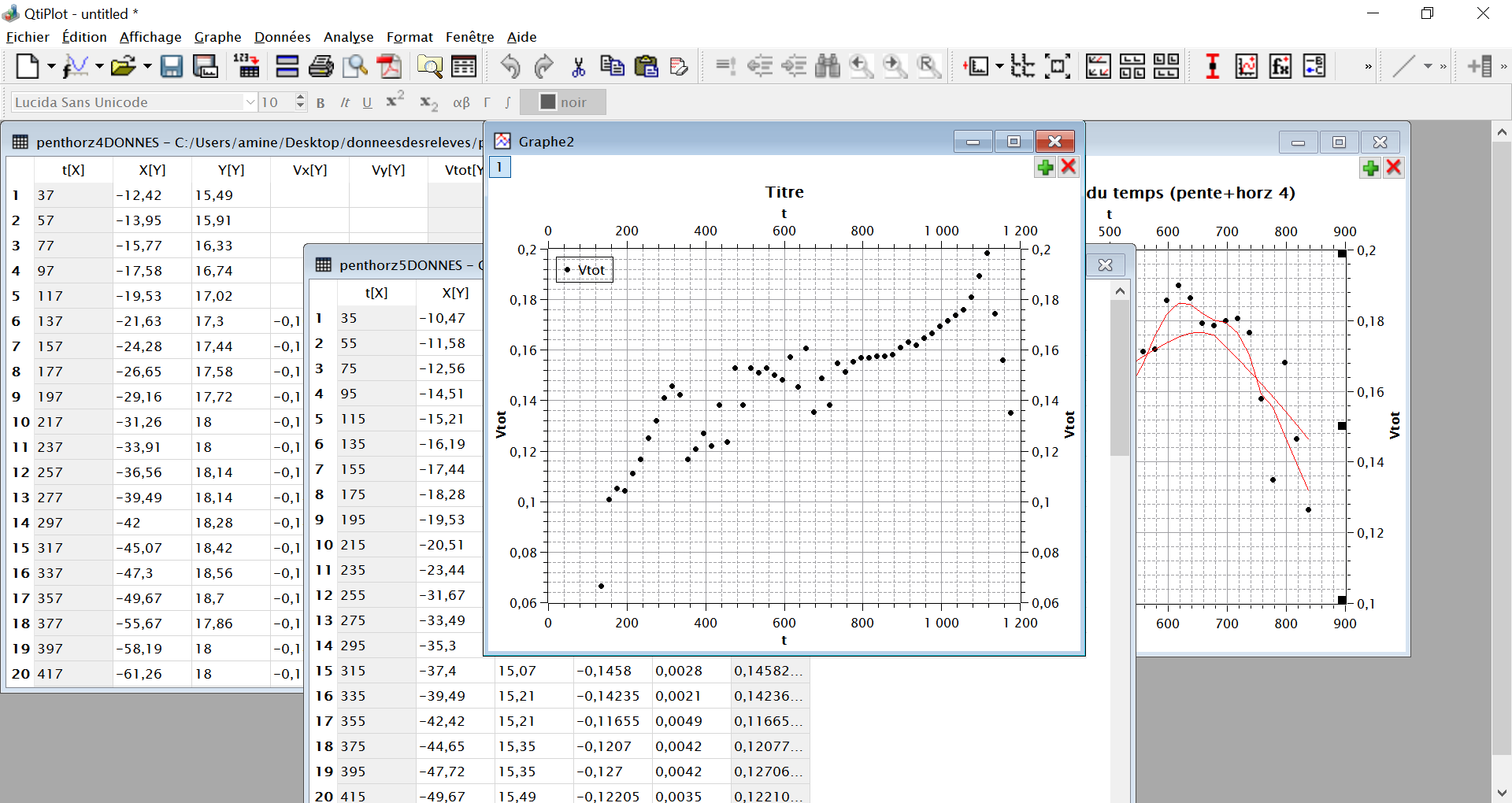 Puis on utilise le logiciel Qtiplot pour le tracé de la vitesse.