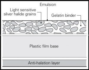 Exposition à la lumière entraine des réactions chimiques de bromure d’argent (AgBr)
