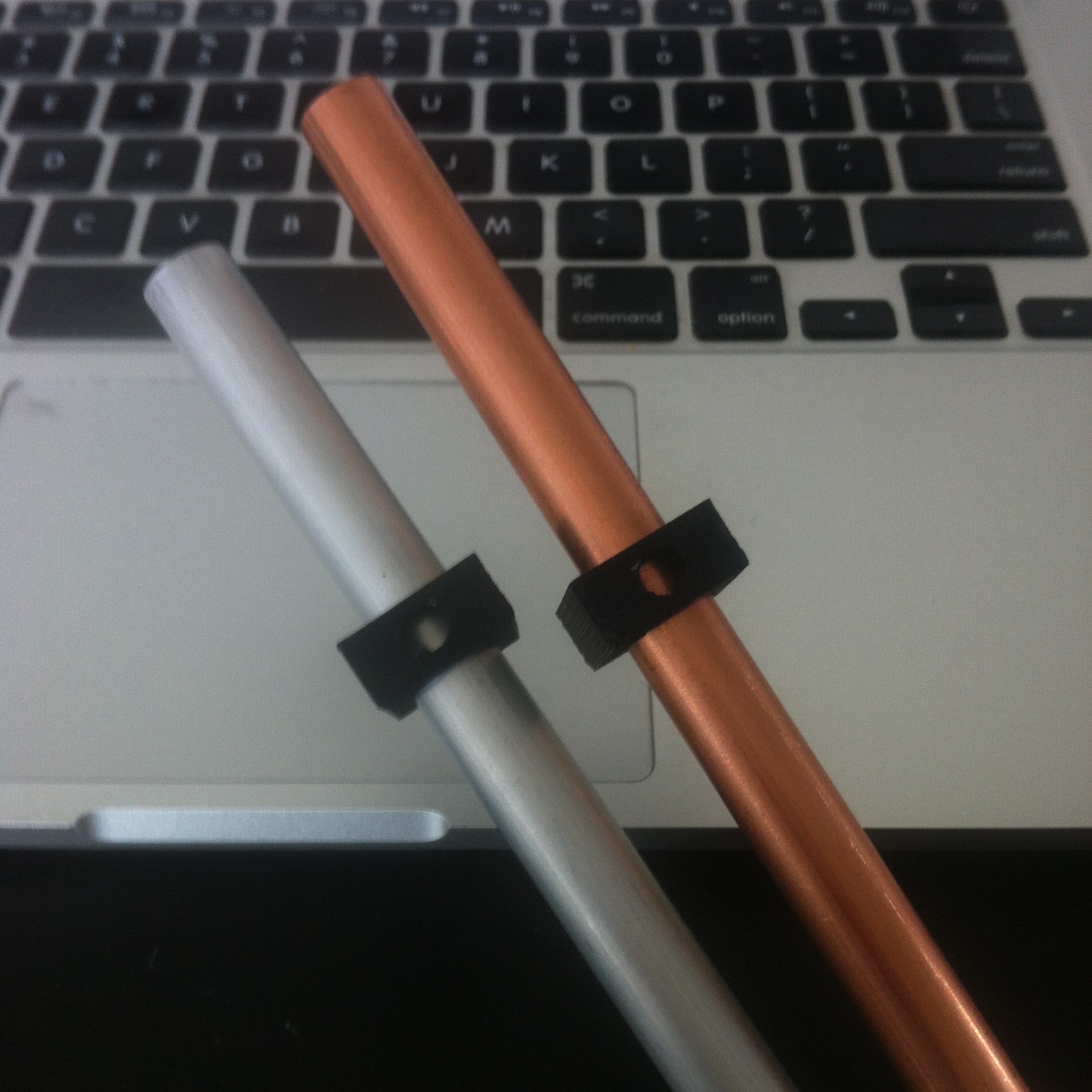 Idée : chronométrer la chute libre d'un objet dans un tube. Moyens : des paires de LED/photo-détecteur connectés à un Arduino sont montées le long d'un tube de 12 mm de diamètre (soit en aluminium, soit en cuivre).