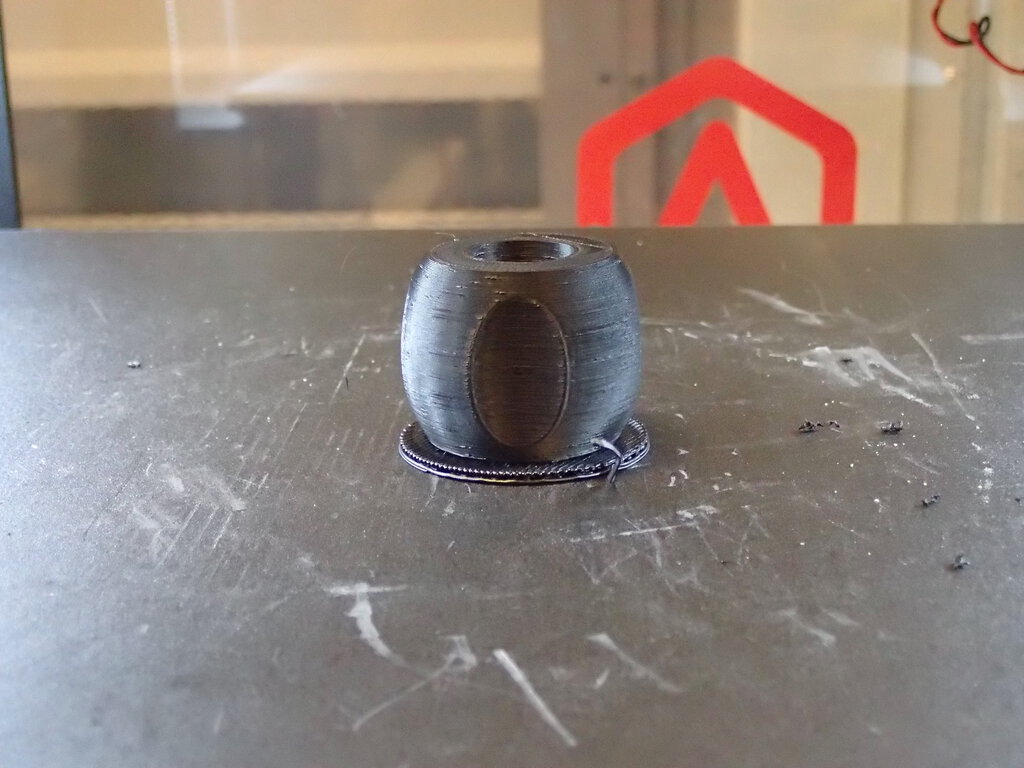 Pour pouvoir noyer la rondelle dans la poignée en plastique, il faut faire une pause dans l'impression