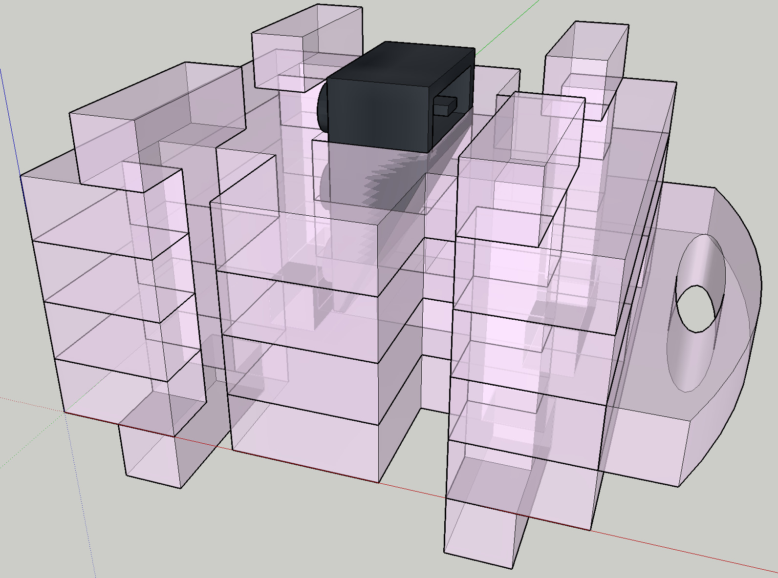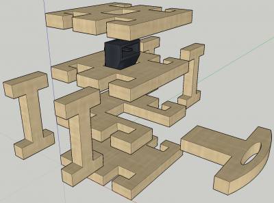 Même si ce projet aurait pu être réalisé sur une imprimante 3D, j'ai fait le choix d'utiliser la découpeuse laser en créant cet espèce de puzzle. Afin de mieux comprendre, voici 2 vues :