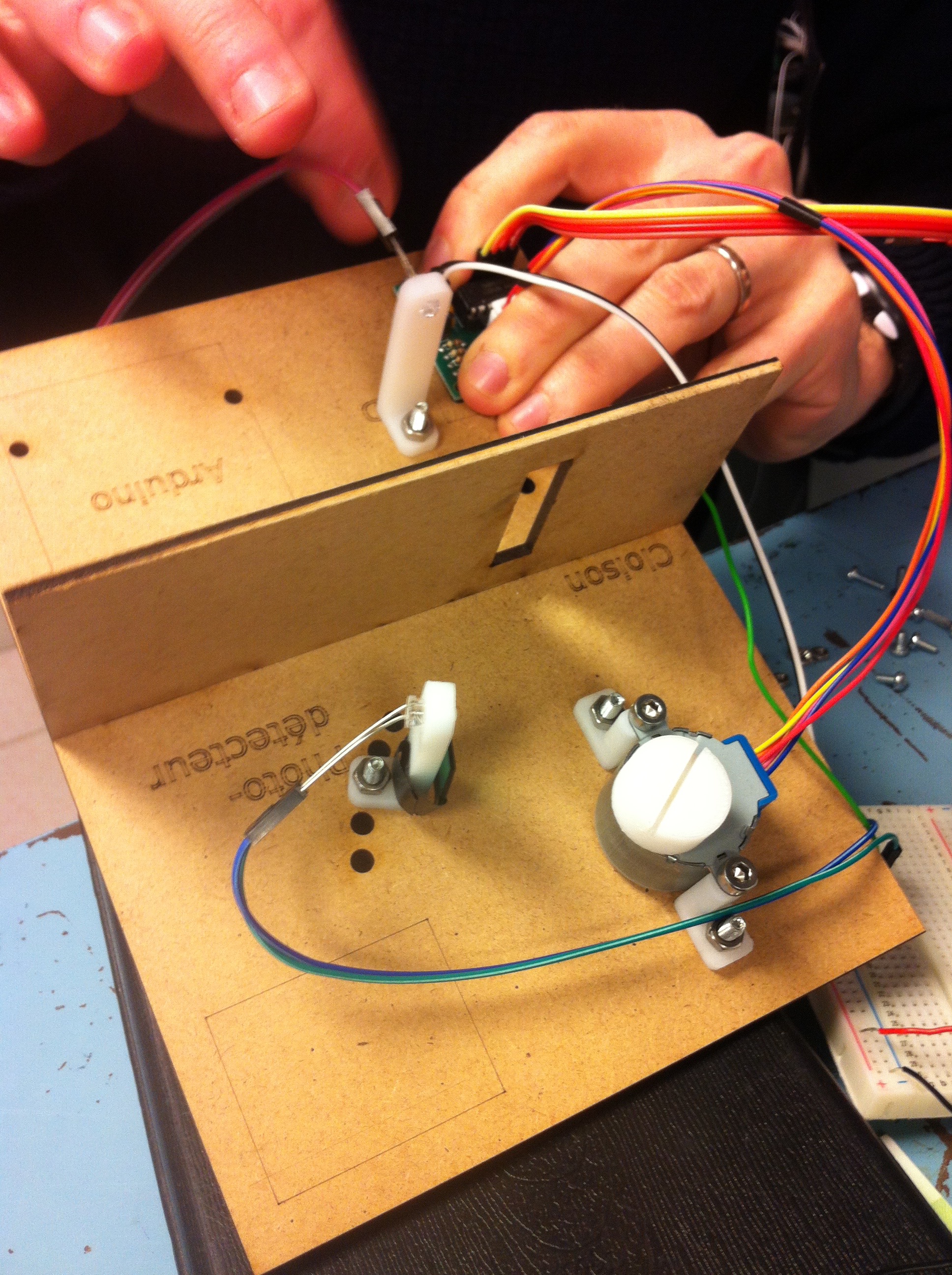On constate quelques défauts/oublis : fente mal alignée ; pas de passe-fil entre le compartiment de la LED, et le compartiment détecteur.