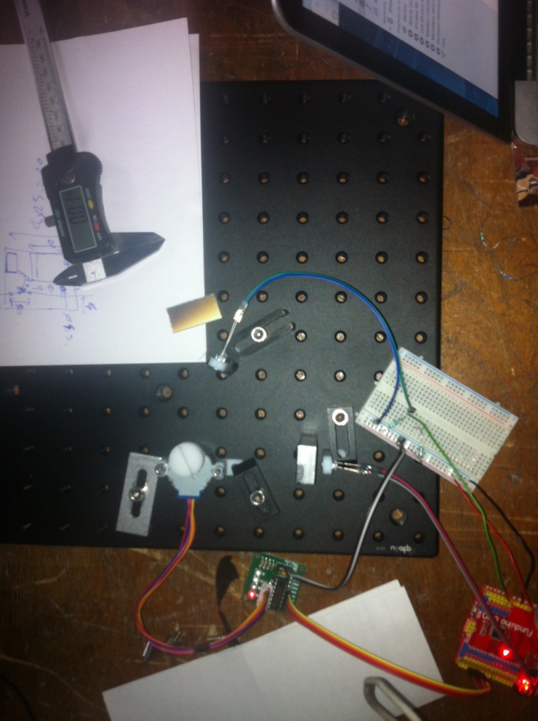 Faire un proto avec un bout de CD avec un moteur pas-à-pas. Le moteur pas-à-pas est moins “boîte noire” que le servo.
