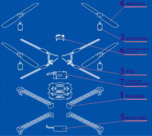 * Spécificité: Multiwii 328P (Atmega328P avec un lot de capteurs), responsable du contrôle des ESCs