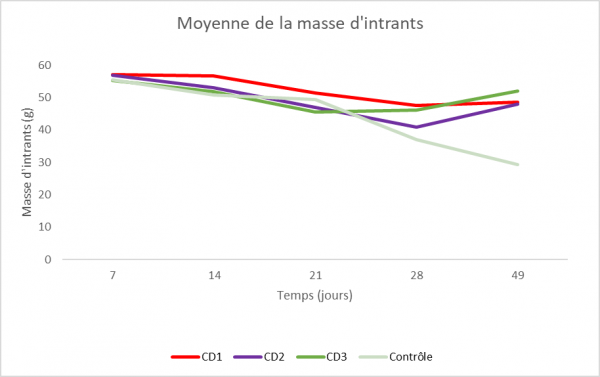 -26/11/2018 au 14/01/2019: Pesée et comptage des vers, pesée des intrants (chaque lundi)