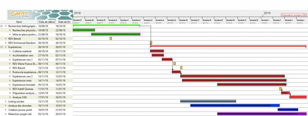 -03/10/18 au 19/10/19: Amélioration protocole, création diagramme de Gantt