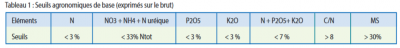 En effet il est difficile de qualifier la composition chimique d'un compost, et donc sa maturité . Or pour être vendu celui ci doit répondre a une norme NFU44-051 avec les valeurs suivantes :