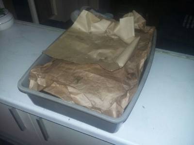Le bac rempli est alors couvert de papier kraft afin de limité la perte d'eau.