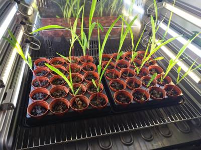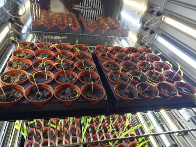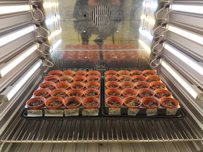 Utilisation de l'enceinte climatique, le phytotron pour que les semences germent et poussent en condition printemps .