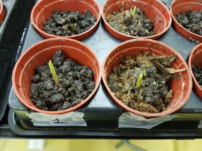 21/12/2018: plantule maïs condition compost vieilli/compost jeune mort de 3 plantules cassées à la base de tige en contact avec la terre