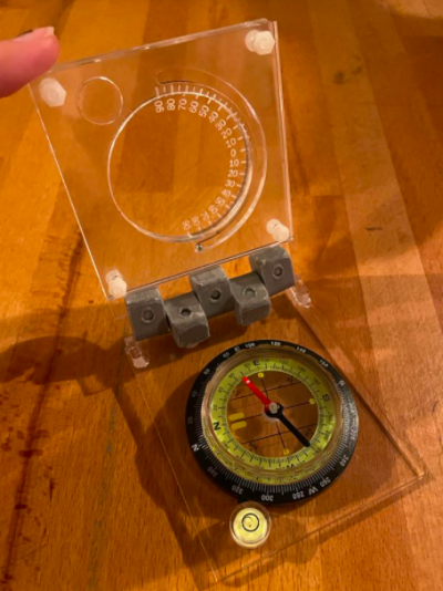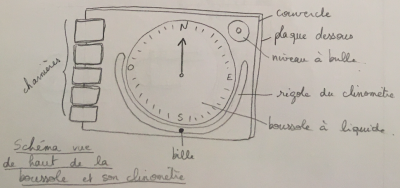 - boussole avec couvercle : clinomètre sur le couvercle et boussole sur l'autre partie, les deux s'emboitant l'un contre l'autre ⇒ protection de la boussole et du clinomètre