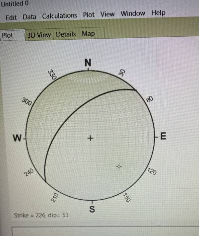 Figure 26 : démonstration de l'utilisation de l'application Stereonet copyright © by R. W. Allmendinger, 2011-2020