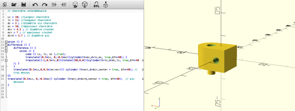 figure 15 : code et modélisation 3D de la charnière intermédiaire