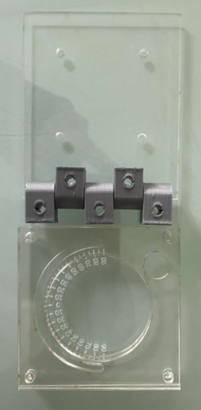 Pour réaliser le support en Plexiglas de la Boussole et le clinomètre nous avons utilisé le logiciel Open Scad afin de coder les plans nécessaires pour découper le Plexiglas à la découpeuse Laser de l'Espace Prototypage du FabLab de Sorbonne Université.