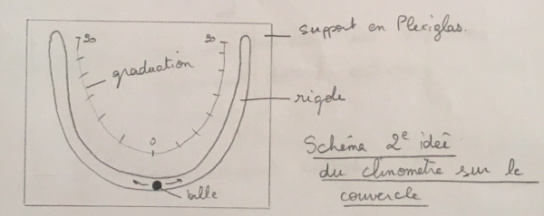 figure 4 : schéma du clinomètre, modèle de bille dans une rigole
