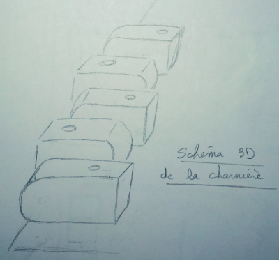 - la charnière n'est pas encore au point. Les pièces de la charnière sont trop grosses et empêchent sa fermeture et les trous pour les vis sont trop larges (M4 comme la vis) ce qui ne permet pas de fixer correctement la charnière