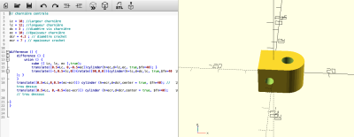 Pour cela, nous avons utilisé différentes variables de façon à pouvoir modifier facilement les dimensions une fois les codes écrits. Nous avons réfléchis au nombre de vis et leur position sur les plaques afin de prévoir les trous lors de la découpe.