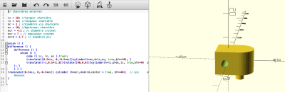 figure 14 : code et modélisation 3D de la charnière externe