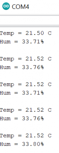 Sur ce même site, on a obtenu le code permettant d'afficher les mesures du capteur d'humidité et de température, qu'on injecte dans le logiciel Arduino. Voir ci-dessous :