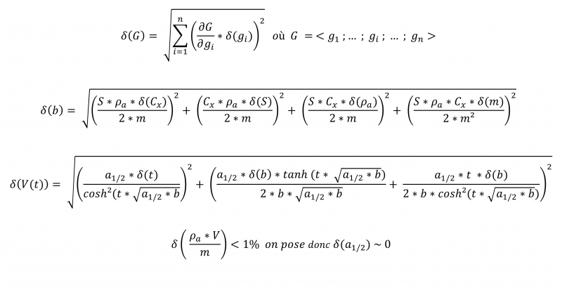 Variables m (en g) S (en m²) b (1/m) t (en secondes) ρ de l'air (kg/m³)