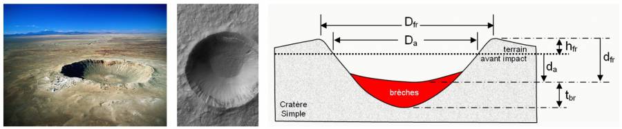 Si l’on s’intéresse à la morphologie des cratères d’impact, on remarque qu’il existe deux types de cratères caractéristiques :