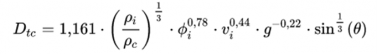 Nous allons donc comparer nos mesures au modèle théorique de Robert Marcus, H. Jay Melosh et Gareth Collins (Earth Impact Effects Program: A Web-based computer program for calculating the regional environmental consequences of a meteoroid impact on Earth). Nous avons donc tracé les valeurs théoriques dudit modèle pour le diamètre du cratère (à distinguer du “trou”) selon la vitesse de l'impacteur à l'aide de la formule suivante (Dtc étant le diamètre du cratère) :