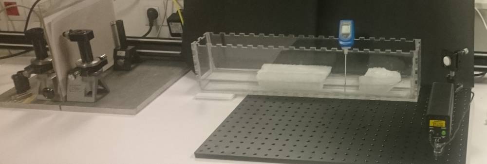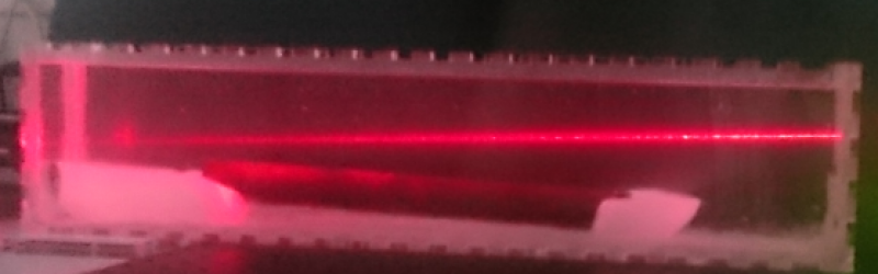 L'expérience n'a pas été concluante: aucune déviation observée (ou une minime si on regarde vraiment très bien). La température s'est homogénéisée trop rapidement, en seulement quelques secondes le gradient était déjà devenu très faible, et nous n'avons pas eu le temps d'observer quelque chose. Cela peut peut-être s'expliquer par le fait que nous avons versé l'eau bouillante trop rapidement et cela a favorisé le mélange de l'eau chaude et celle refroidie par le glaçon d'azote, en rajoutant en plus les échanges avec l'air ambiant, et donc l'homogénéisation de la température. Il faudrait refaire cette expérience en versant l'eau chaude lentement sur la surface ou aussi essayer d'inverser: mettre d'abord l'eau bouillante au fond de la cuve et rajouter les glaçons d'azote au dessus.