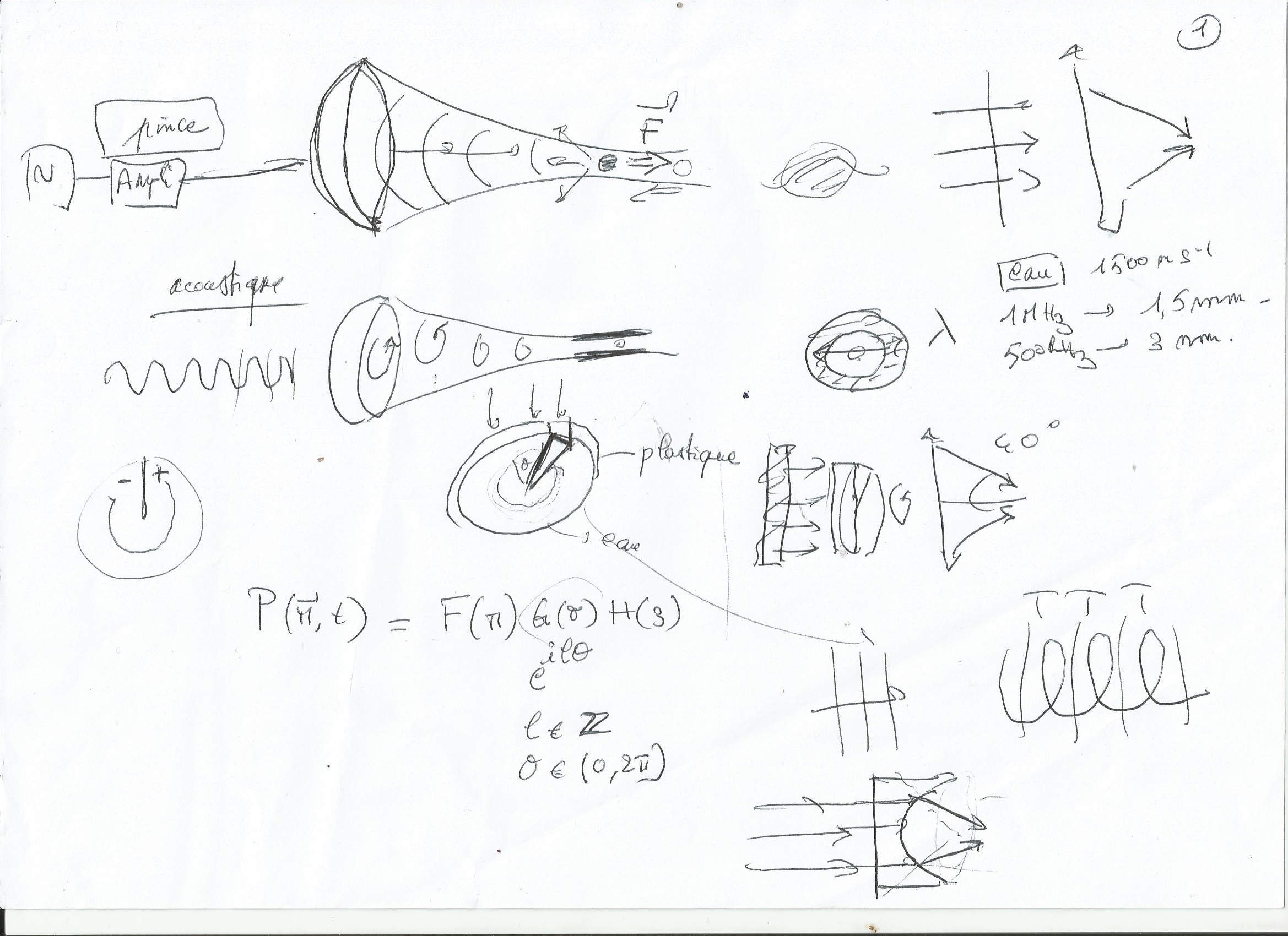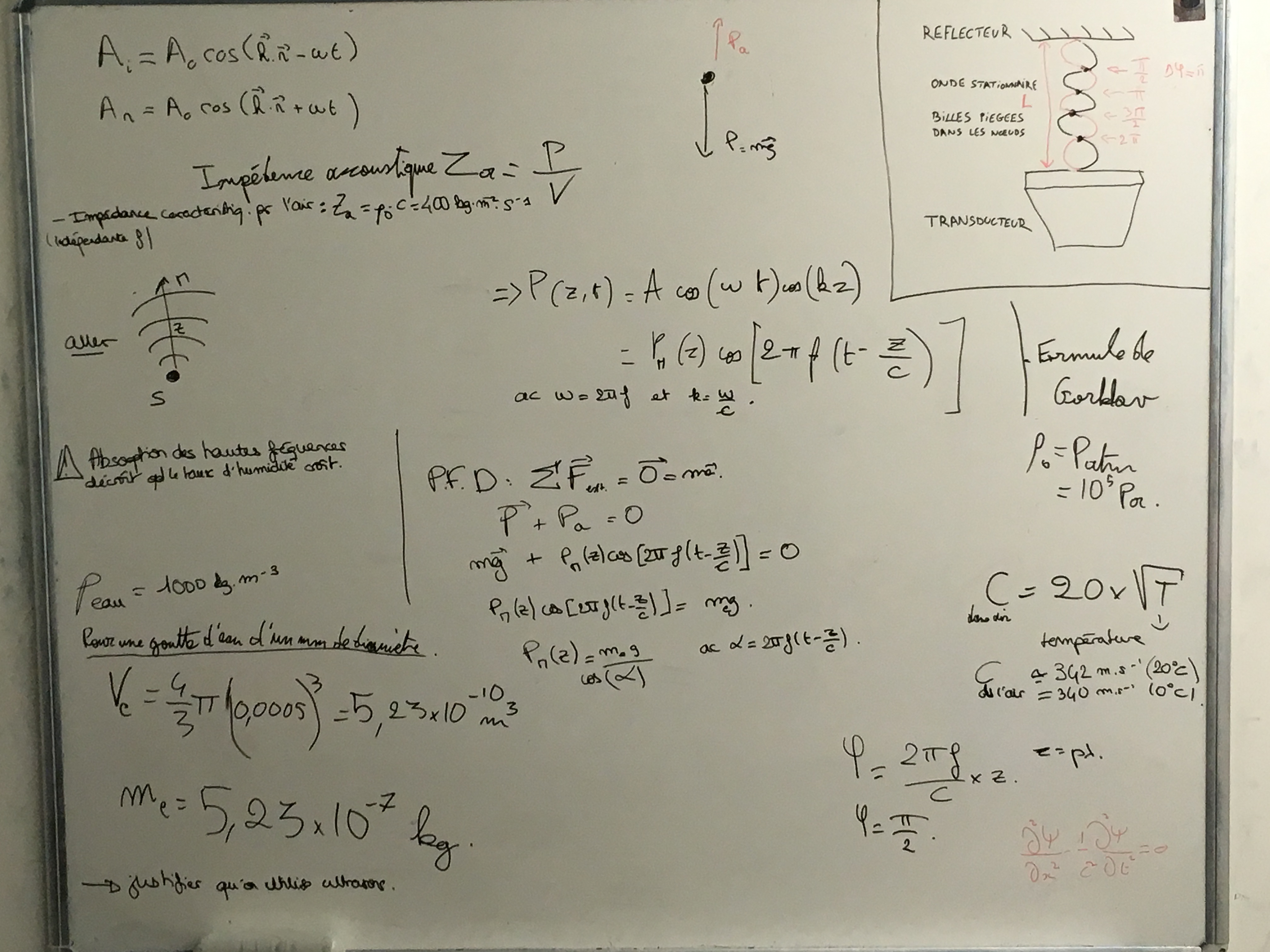 Grâce aux formules complétées par notre enseignant de TD nous cherchons à expliquer par le phénomène de notre projet les équation d’ondes de pression acoustique.