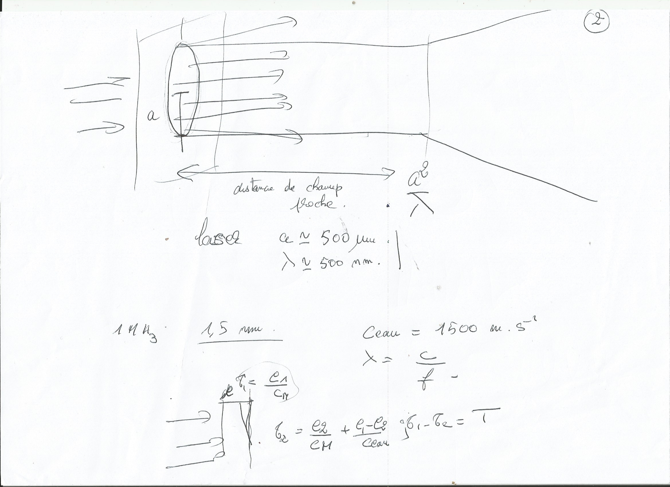 Nous avons de plus trouvé le problème lié au calcul de l’épaisseur de la lentille formant le vortex. En effet, la formule de l'épaisseur totale est. Les indices du milieu n'étaient pas les bons, nous avions les “n” optiques au lieu des “n” acoustiques.