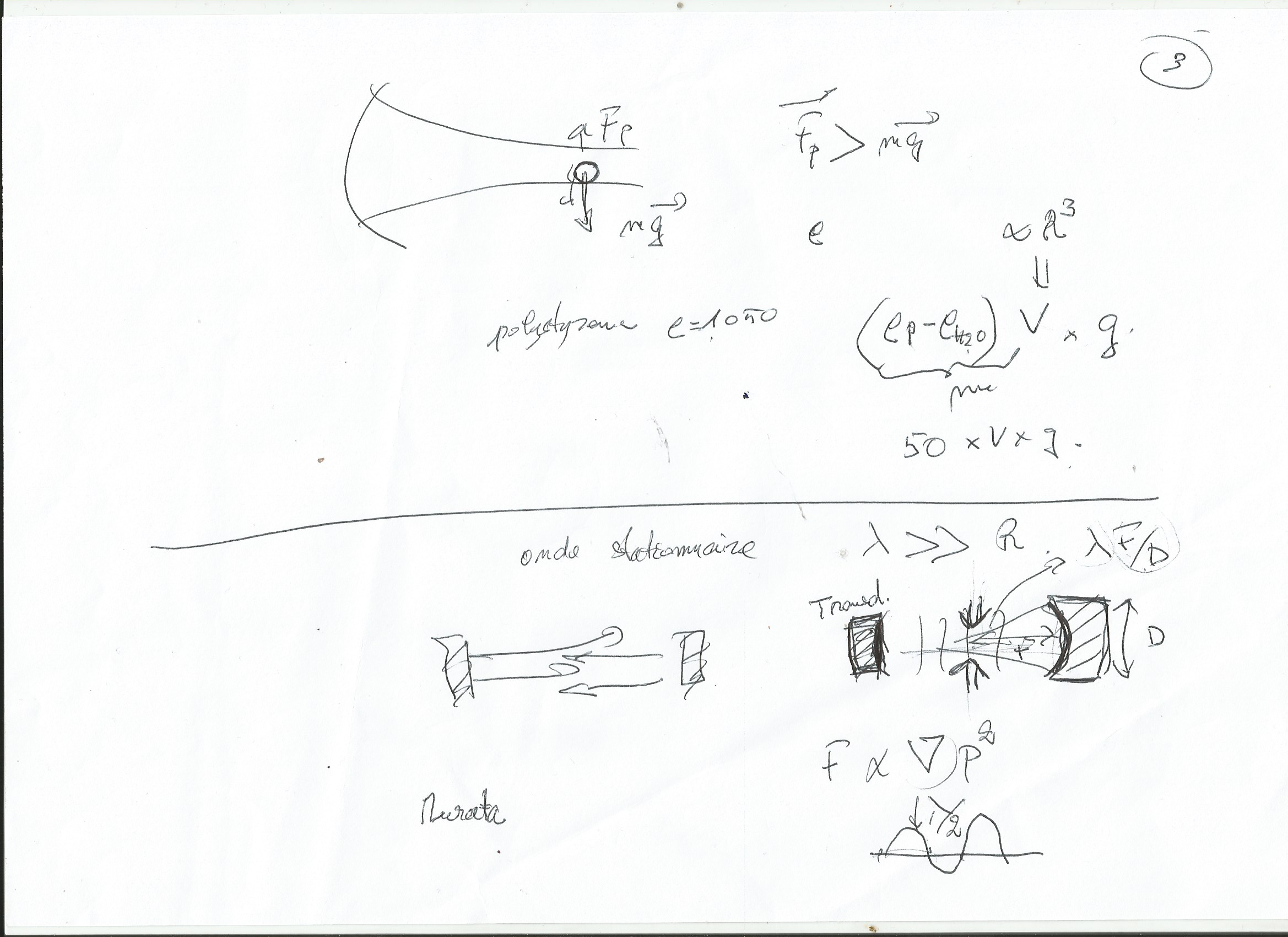 Sara et Nicolas sont allés parler à l’enseignant, chargé de TD, pour éclaircir quelques raisonnements. Il nous a introduit la poussée d’Archimède que nous n’avions toujours pas prise en compte. Il nous a expliqué plus en détail le fonctionnement du transducteur et qu’est-ce que le polystyrène expansé. Nous avons décidé d’attendre mercredi pour y réfléchir tous ensemble et l’intégrer à nos recherches.