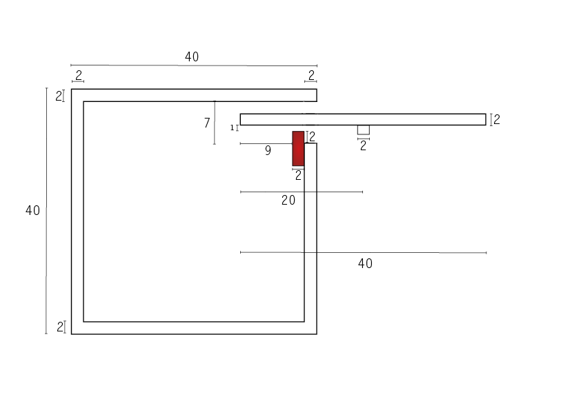 <note>Nous utilisons une des planches de bois ayant servi à la fabrication de l'enceinte pour simuler la roue. Comme dit précédemment, nous avons besoin d'un temps de transfert thermique entre les élastiques et l'air (et en l'absence de ventilateurs) pour homogénéiser leur température. Nous avions donc décidé de concentrer les élastiques sur une petite partie de la roue, ainsi une planche suffit. On y plante des clous aux extrémités pour accrocher les élastiques, plus précisément il y a 3 clous plantés à 2 cm du bord de la planche/roue de 40 x 9 x 2 cm, soit 40 de “diamètre” et 2 centimètre d'épaisseur. Les clous permettant d'y attacher les élastiques, ils dépassent de la planche d'approximativement 3 cm. Pour conserver une marge, la fente qui laissera passer la roue au sein de l'enceinte fera donc 7 cm de largeur sur 36 cm de longueur, il faut en effet retirer les 4 cm d'épaisseur des parois supérieures et inférieures.</note>