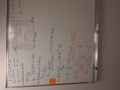 Formule théorique : B = μ0*H = μ0 ( N*I / ( Lc/μr) + Le)