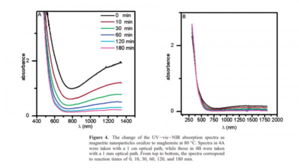 [2] Magnetite Fe3O4 Nanocrystals: Spectroscopic Observation of Aqueous Oxidation Kinetics Jing Tang, Matt Myers, Ken A. Bosnick, and Louis E. Brus, J. Phys. Chem. B 2003, 107, 7501-7506 http://www.columbia.edu/cu/chemistry/groups/brus/pdf2/jp027048e.pdf