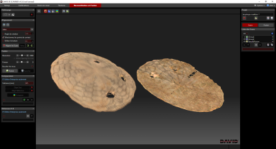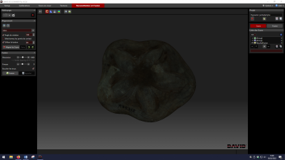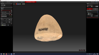 La poursuite des modélisations a été un succès avec la production de 8 mailles bien alignées dont certaines avec une bonne texture. Deux séries de scans sur deux faces suffisent généralement grâce aux fonctions d’alignement du logiciel DavidScan3. Cependant la texture ainsi que la fusion des scans restent un problème autant pour la capacité de traitement de l’ordinateur que pour le fonctionnement du logiciel. Le fonctionnement optimal de la texture reste à élucider. Il reste encore 4 spécimens à scanner, et à supposer que les problèmes de texture/fusion soient rapidement résolus, l’impression pourra commencer sous peu.