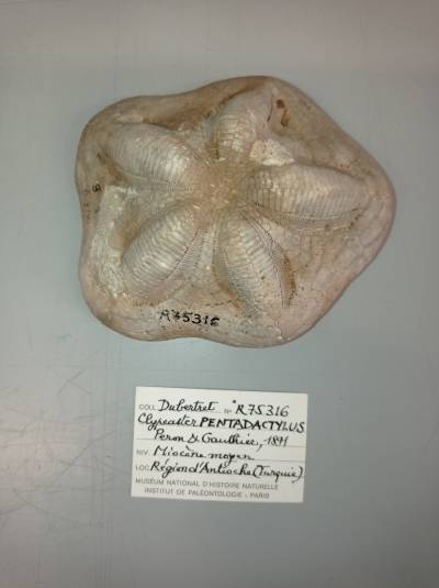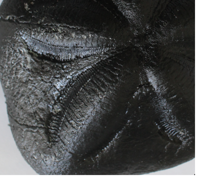 Système apical de Micraster decipiens en modèle 3D (gauche) et en vrai (droite)