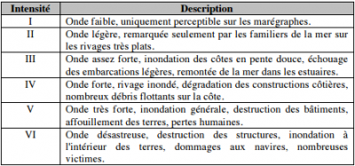 Cependant, la formule donnant accès à l'amplitude d'un séisme ne prend pas en compte l'extension spatiale des tsunamis. Il est donc plus commode de faire appel aux échelles d'intensité et d'amplitude des tsunamis.