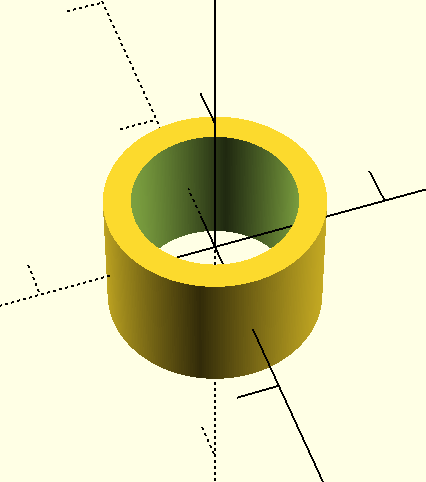 Cylindre bloquant le roulement**cylinder(r=6,h=10,center=true); cylinder(r=4.5,h=12,center=true); $fn=300;