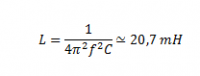 Nous avons ensuite déterminer théoriquement l'inductance de la bobine à l'aide d'un circuit résonnant dont on a déjà connaissance de la fréquence de résonance et la capacité des piezos. On obtient ainsi la formule suivante: