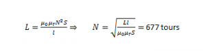 Où L correspond à l'inductance,l au diamètre du support,S la surface du fil de cuivre(dans notre cas : diamètre = 0.8 mm).