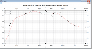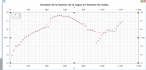 En utilisant les 2 logiciels Kinovéa et Qtiplot, voici le tracé de la variation de la hauteur de la vague en fonction du temps: