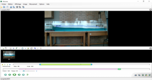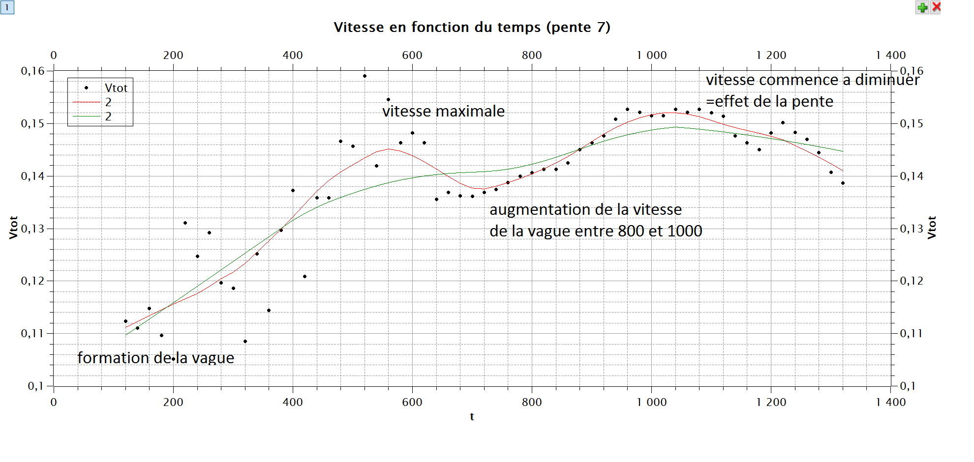 Ensuite nous avons utilisé le logiciel Kinovéa afin de réaliser le pointage du sommet de la vague; on obtient alors un tableau de données (composantes selon les axes X et Y et le temps)