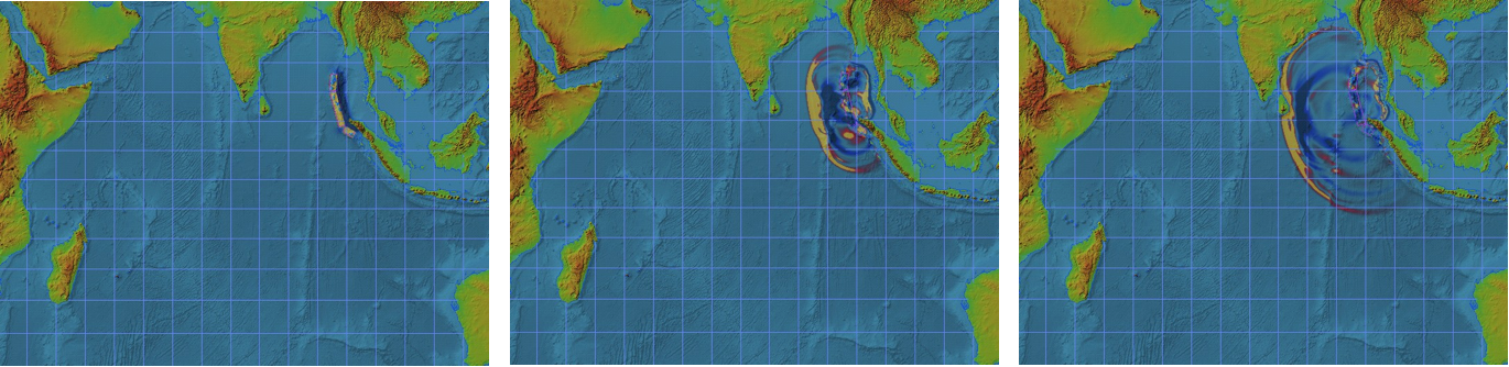 Images de la simulation de la propagation du tsunami de décembre 2004 (Sumatra)