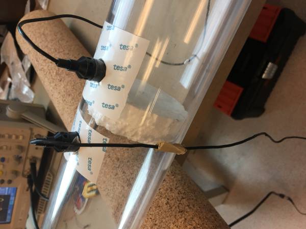 Photo du montage expérimental avec comme échantillon de la laine de verre.