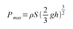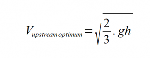 The optimum velocity of the upstream water flow (which can be modified depending on the blades incidence with respect to the water flow vector) can be calculated by taking the derivative of the power with respect to Vupstream. Whence: