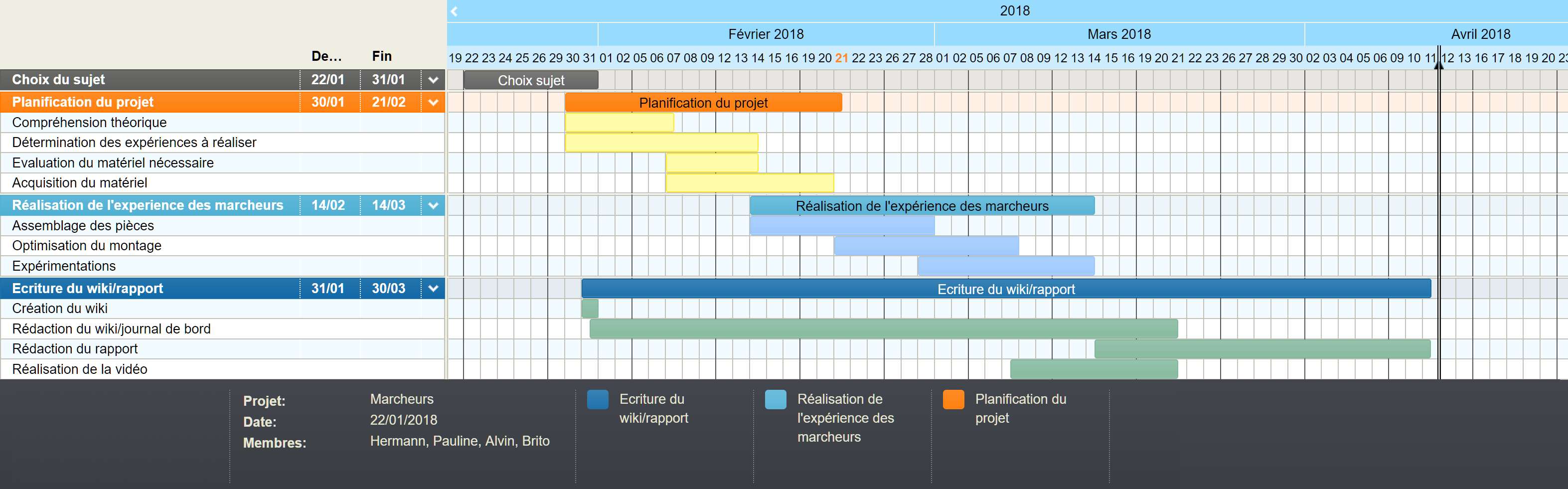 01 Février : Réalisation de la première version du diagramme de Gantt. Durée : ~1h30