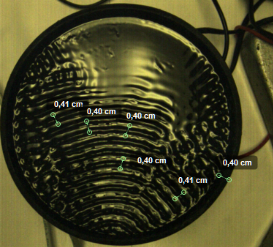 On arrive ainsi à mesurer la longueur d'onde à l'instabilité de Faraday pour une fréquence de $30$ $Hz$ pour notre montage.