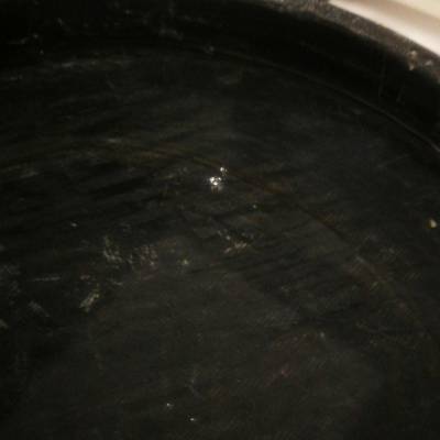 Pour nos premiers essais avec la première huile silicone, nous avons fait osciller le bain verticalement à une fréquence de $25$ $Hz$ modulée en amplitude. Malheureusement, cette configuration nous fait obtenir des gouttes trop volumineuses qui ne rebondissent tout simplement pas et qui coalescent après une durée de l'ordre de la minute. Ceci est dû à la viscosité trop importante de l'huile utilisée. (Ici, la vidéo est ralentie de moitié.)
