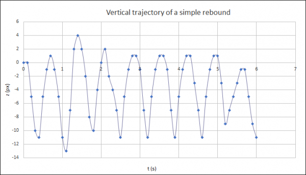 21 mars : Acquisition vidéo du simple rebond avec une configuration de $50$ $Hz$ et une amplitude $1$ $g$. Traçage des courbes des trajectoires sur $z$ du simple rebond à l'aide de Kinovéa et d'Excel. Recherche des autres régimes de sauts (Double rebond et Chaos)