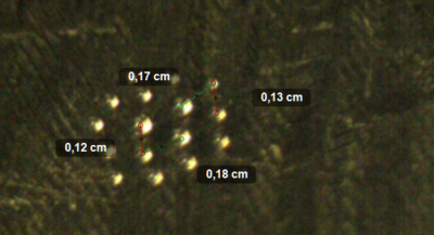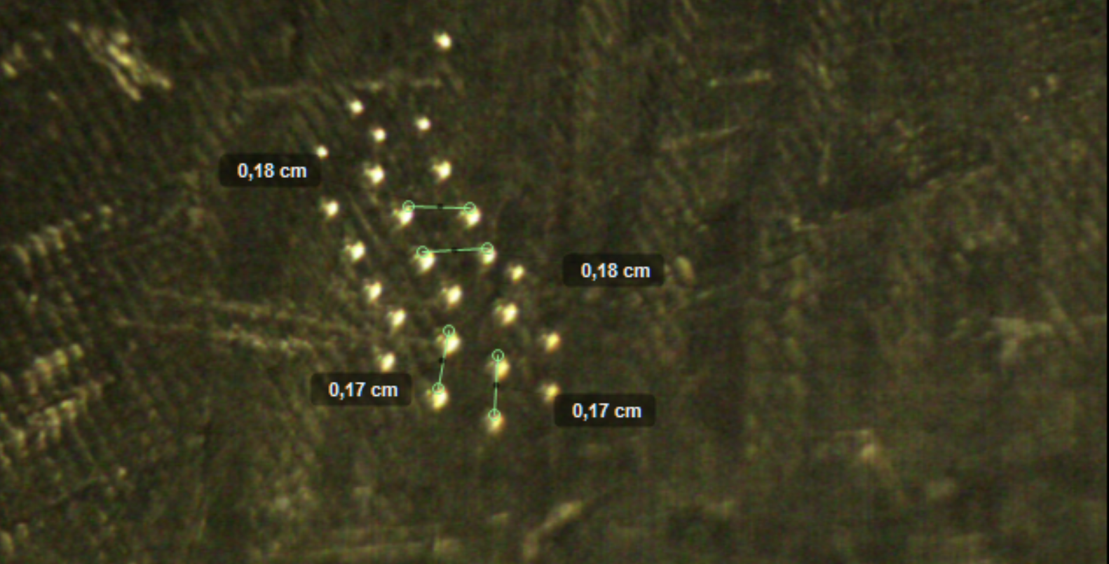 Ce système est observé pour une accélération de $2.8$ $g$ et nous traitons à nouveau l'image pour en tirer les distances entre les gouttes :